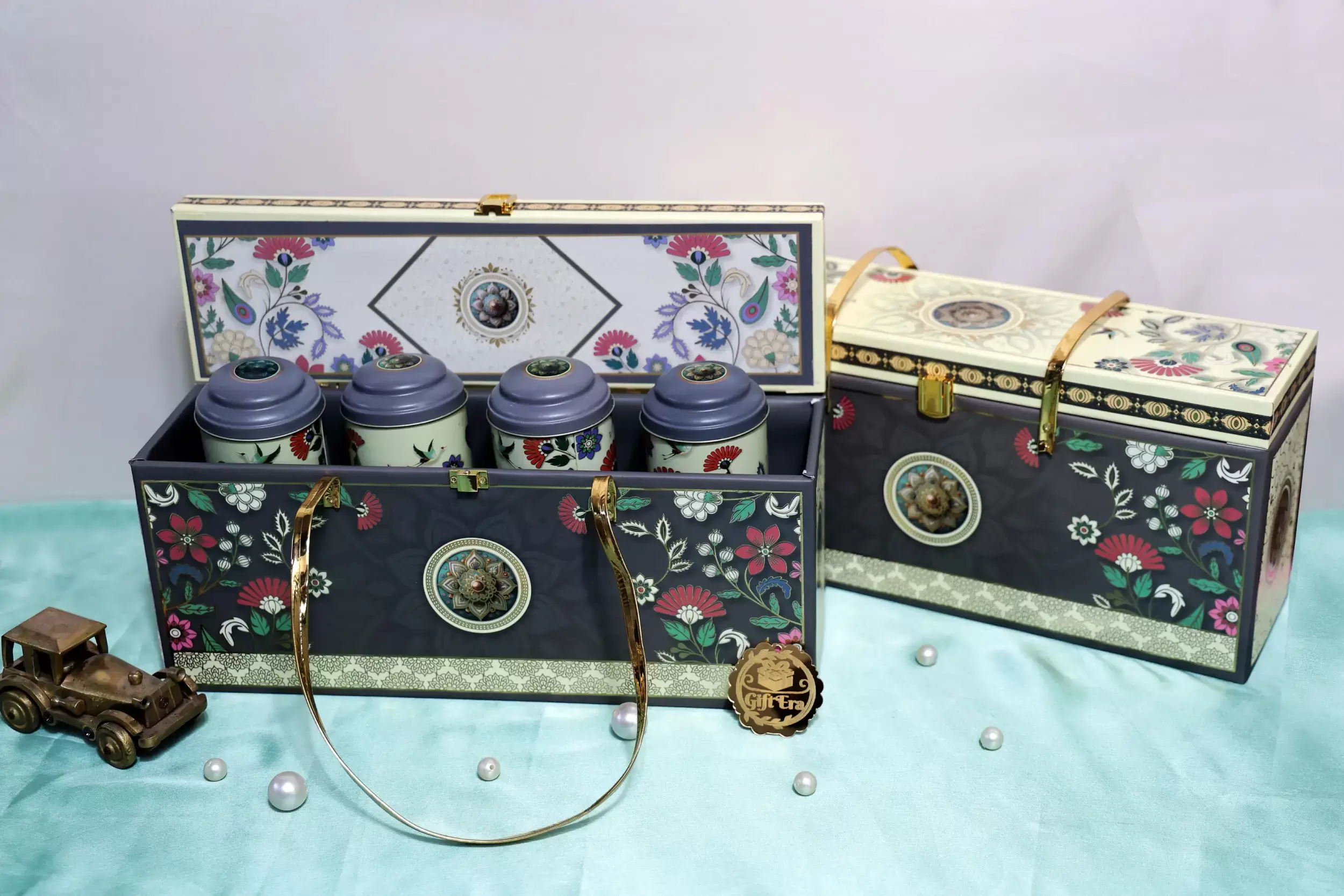 • A regal hamper beautifully crafted with traditional motifs and a luxurious finish.