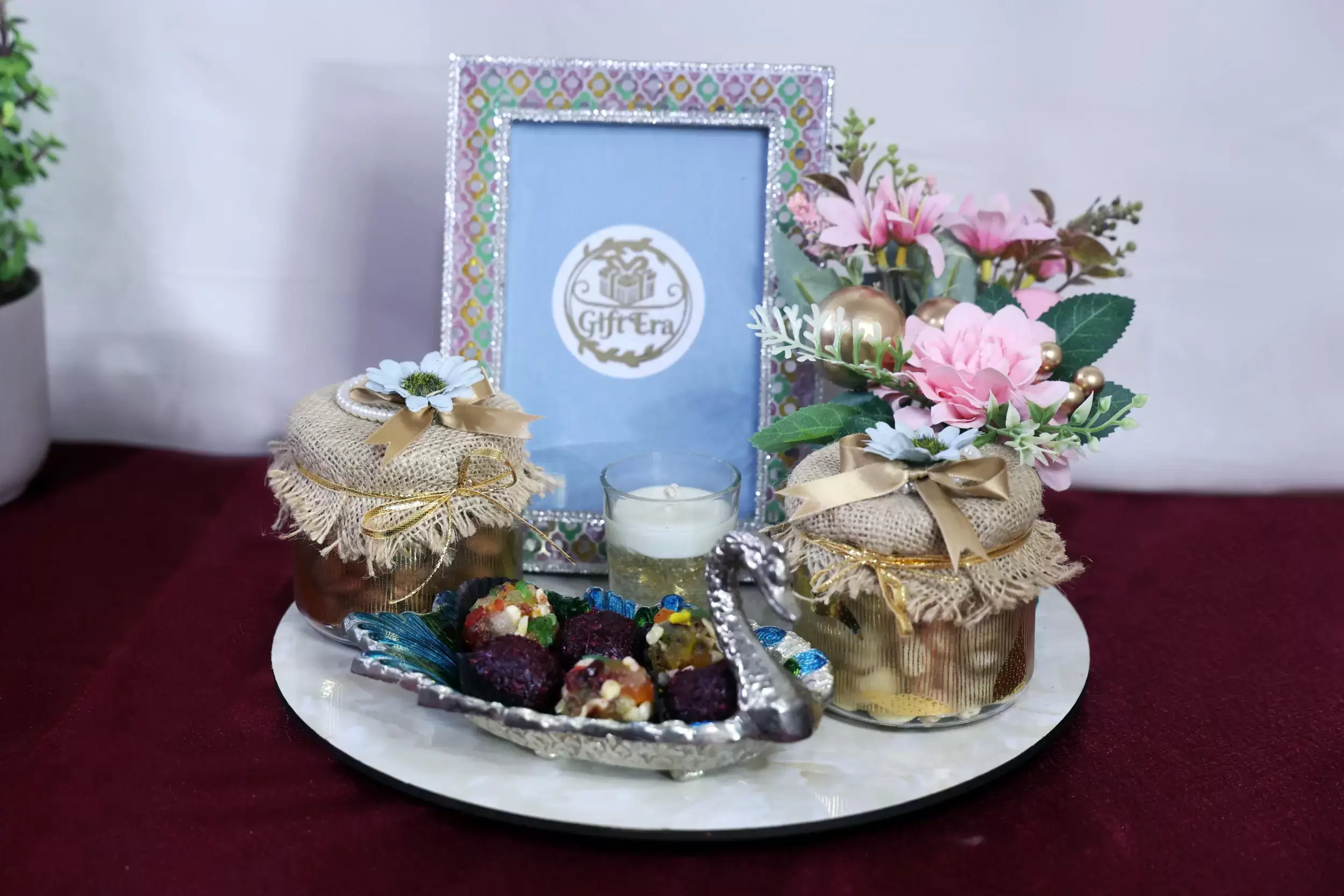 • Balanced combination of décor, dry fruits, and fusion sweets for festive gifting.