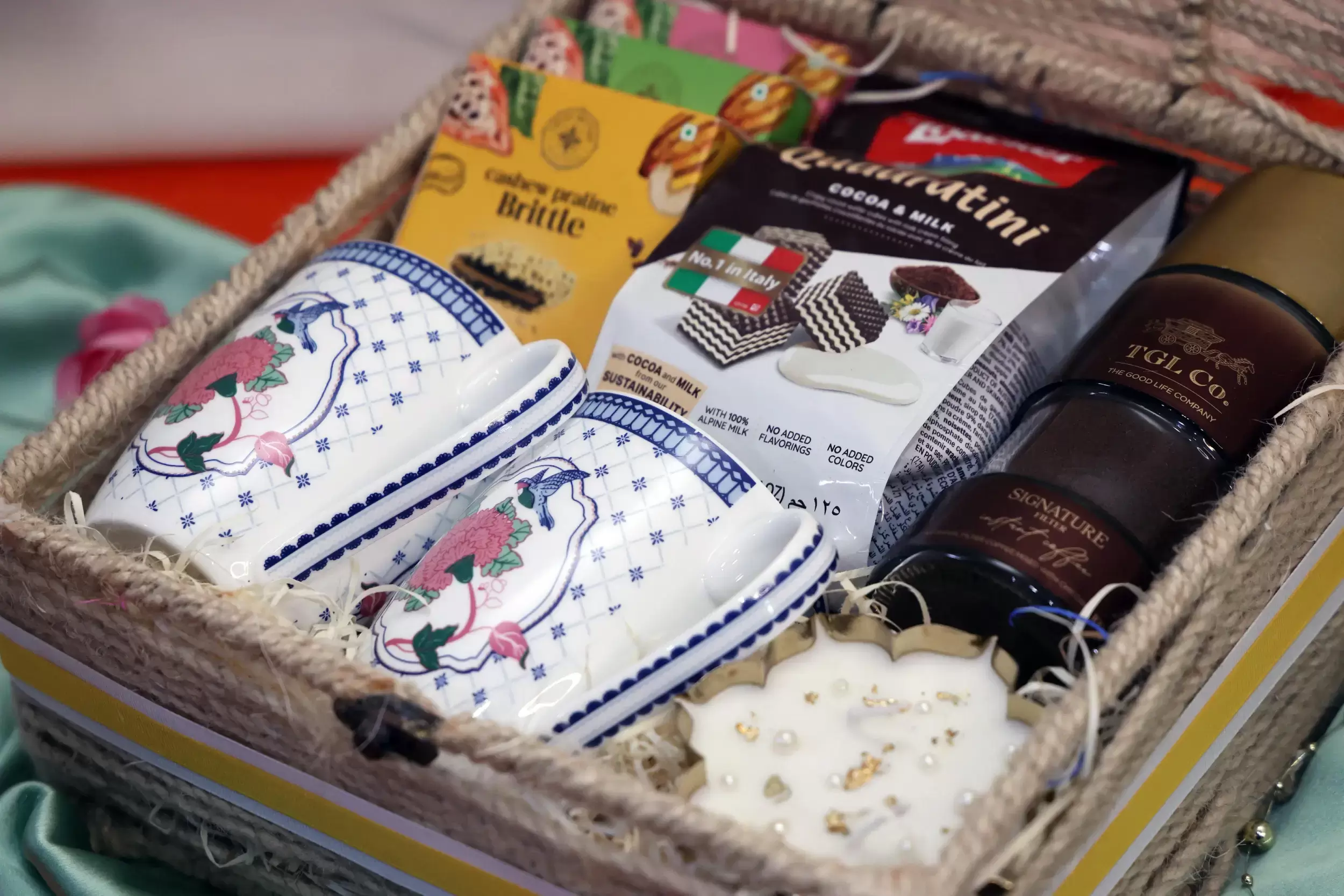 • Perfectly curated with tea, coffee, and gourmet treats for refined tastes.