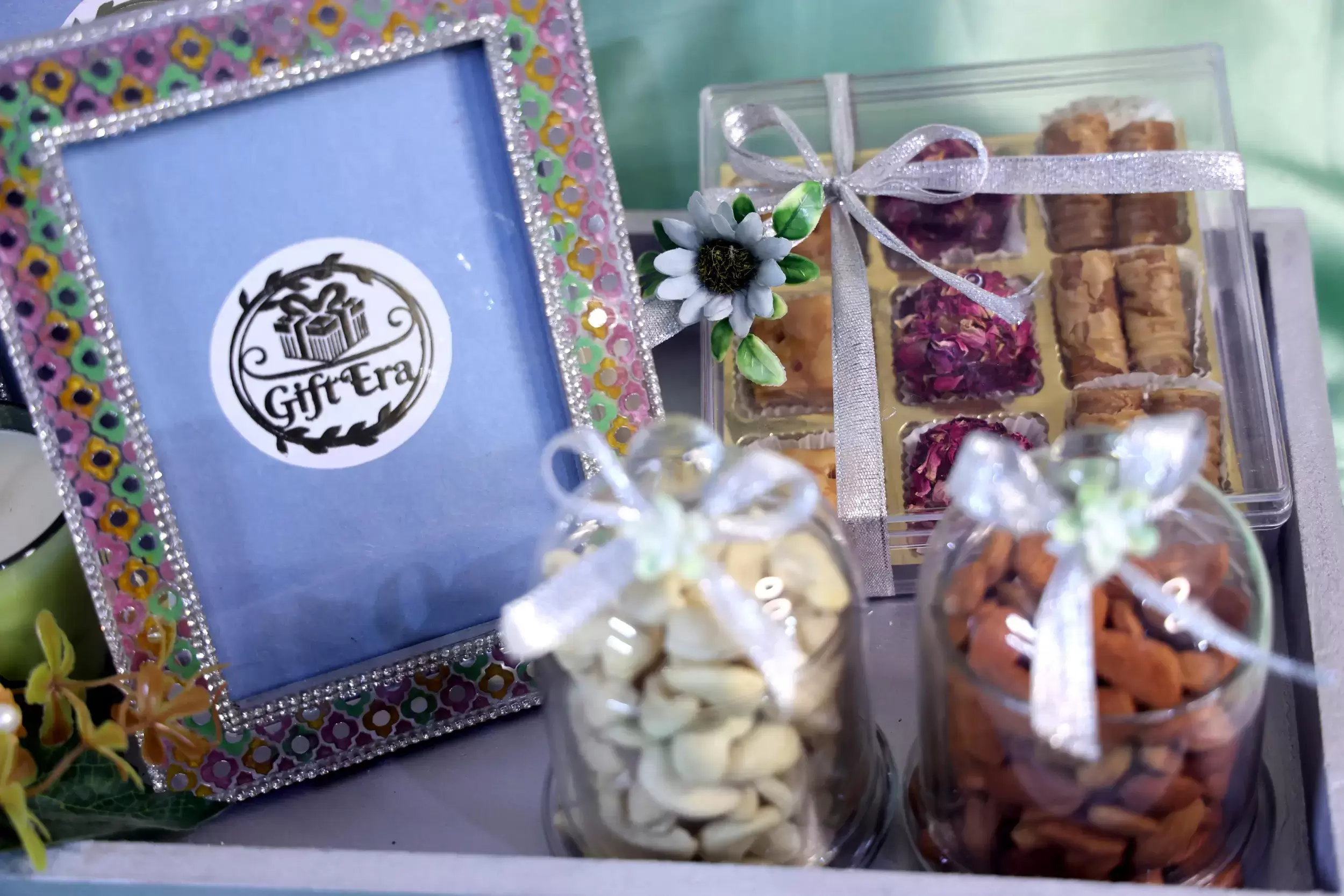 • Paired with luxury sweets and dry fruits for a wholesome festive delight.