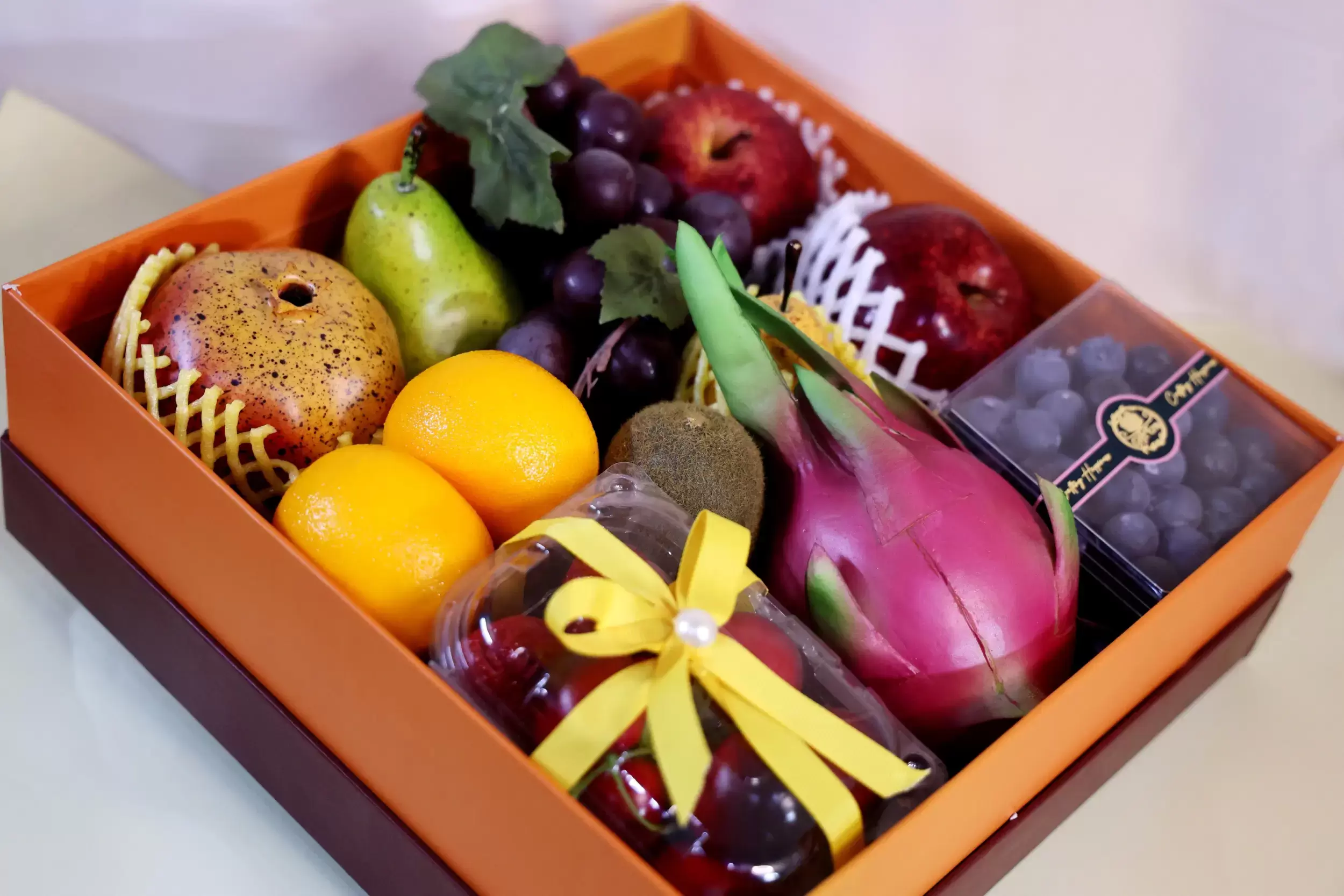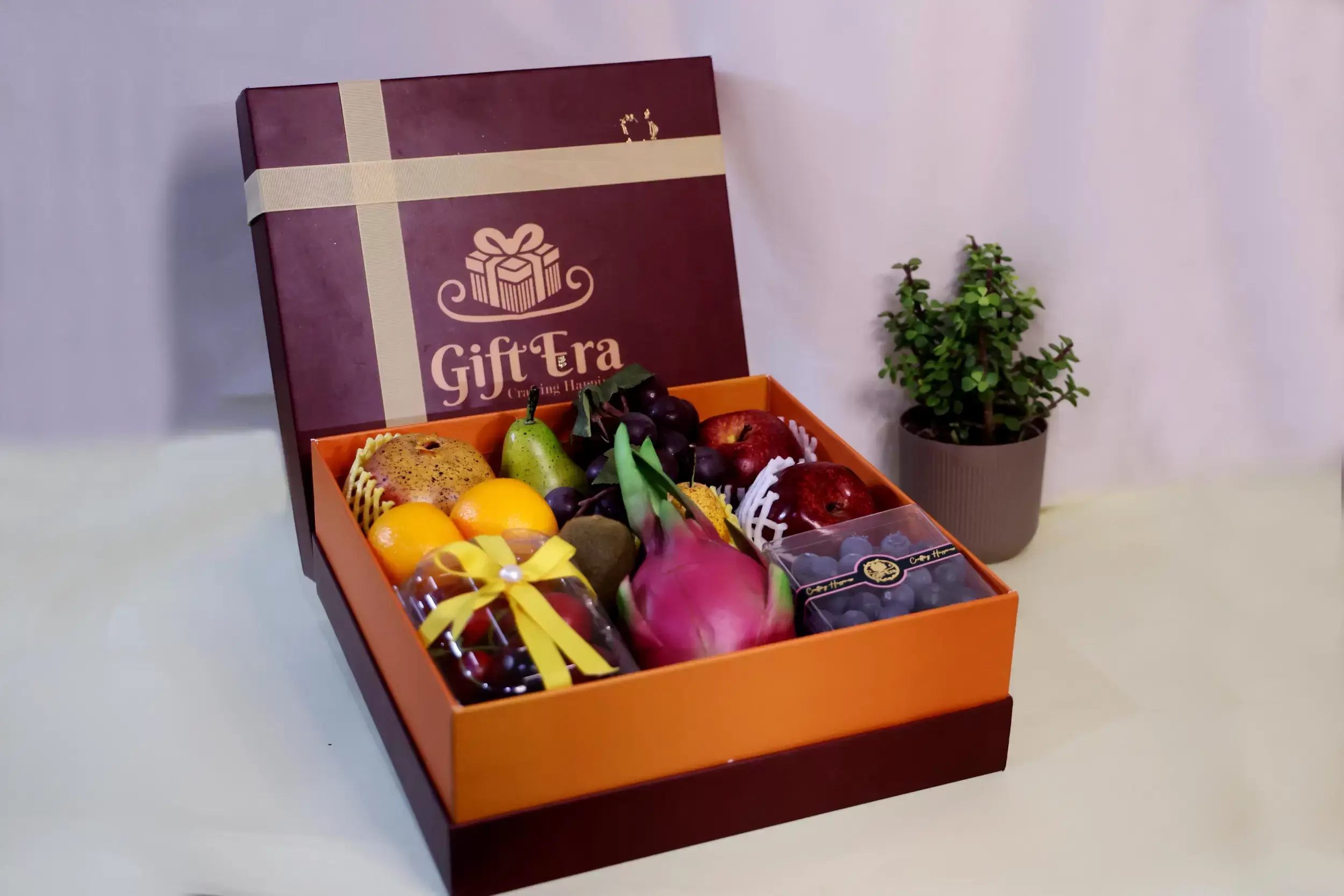 • A premium assortment of seasonal fresh fruits elegantly presented in a classic GiftEra box.