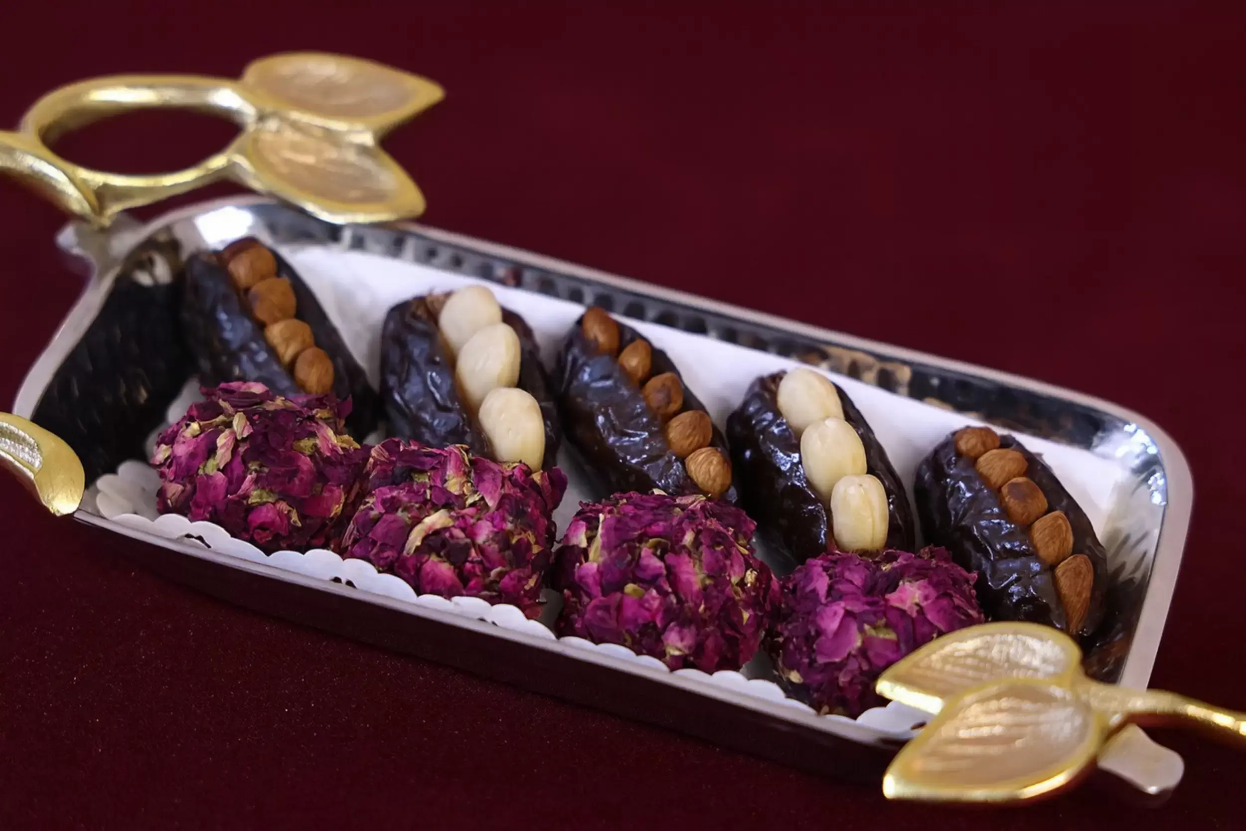 • A luxurious platter of premium stuffed dates and handcrafted delights.