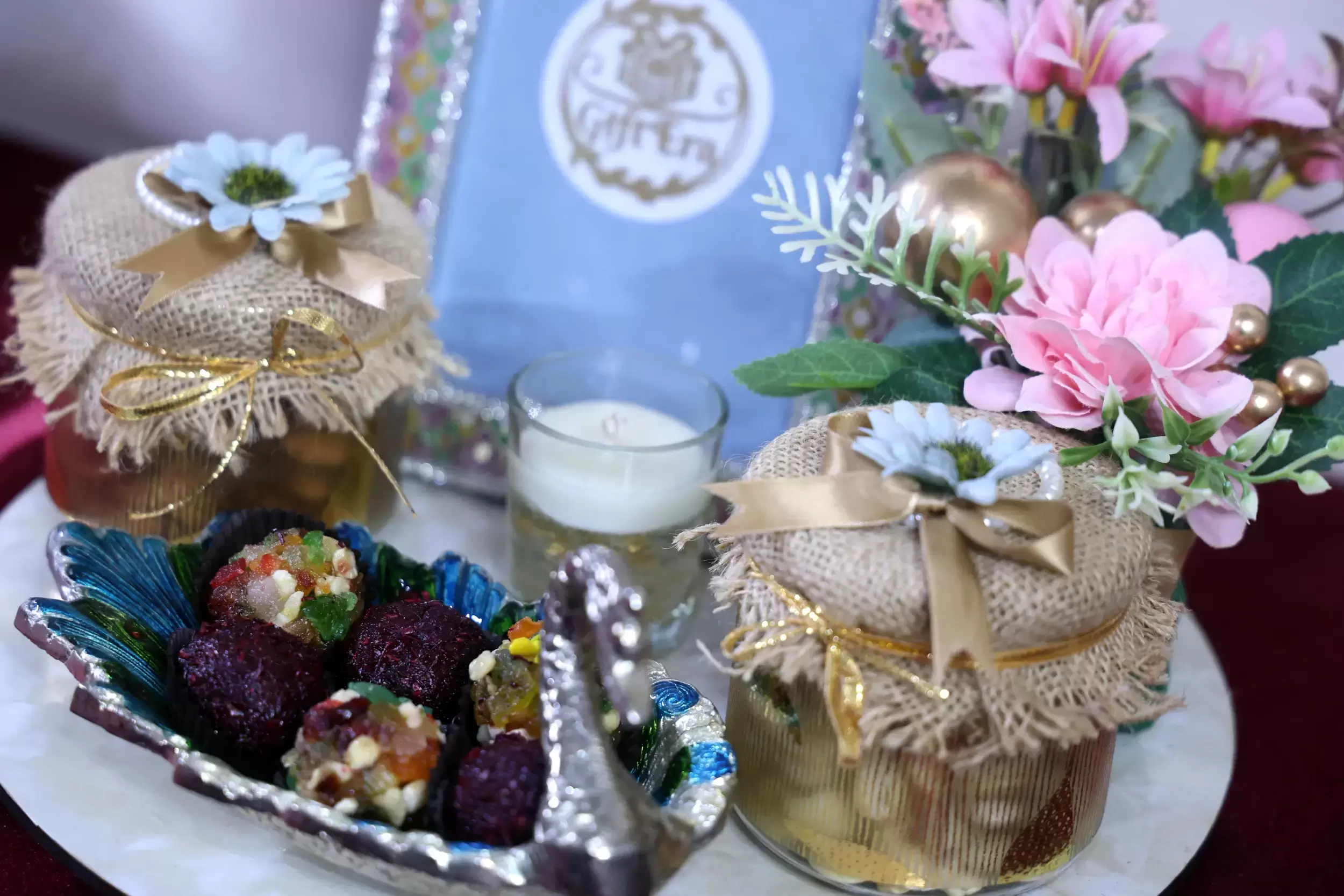• Balanced combination of décor, dry fruits, and fusion sweets for festive gifting.